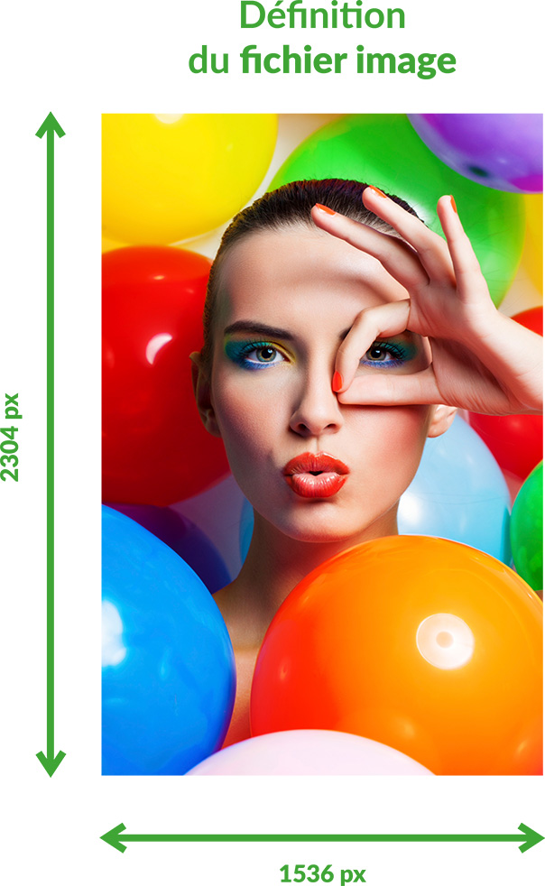La résolution de votre fichier est essentielle pour vous assurer de la qualité finale de votre futur tirage. Elle permet de vérifier que votre image originale dispose d’un nombre suffisant de points dans une surface déterminée pour éviter que le tirage ne soit flou ou pixelisé.