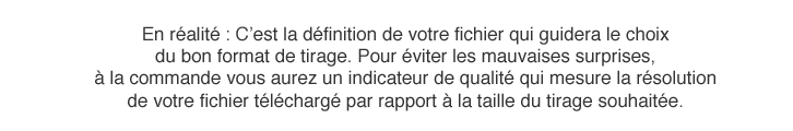 Vérifier donc bien d’avoir une résolution très inférieure à 300dpi pour vos tirages et à 150dpi pour vos impressions directes.