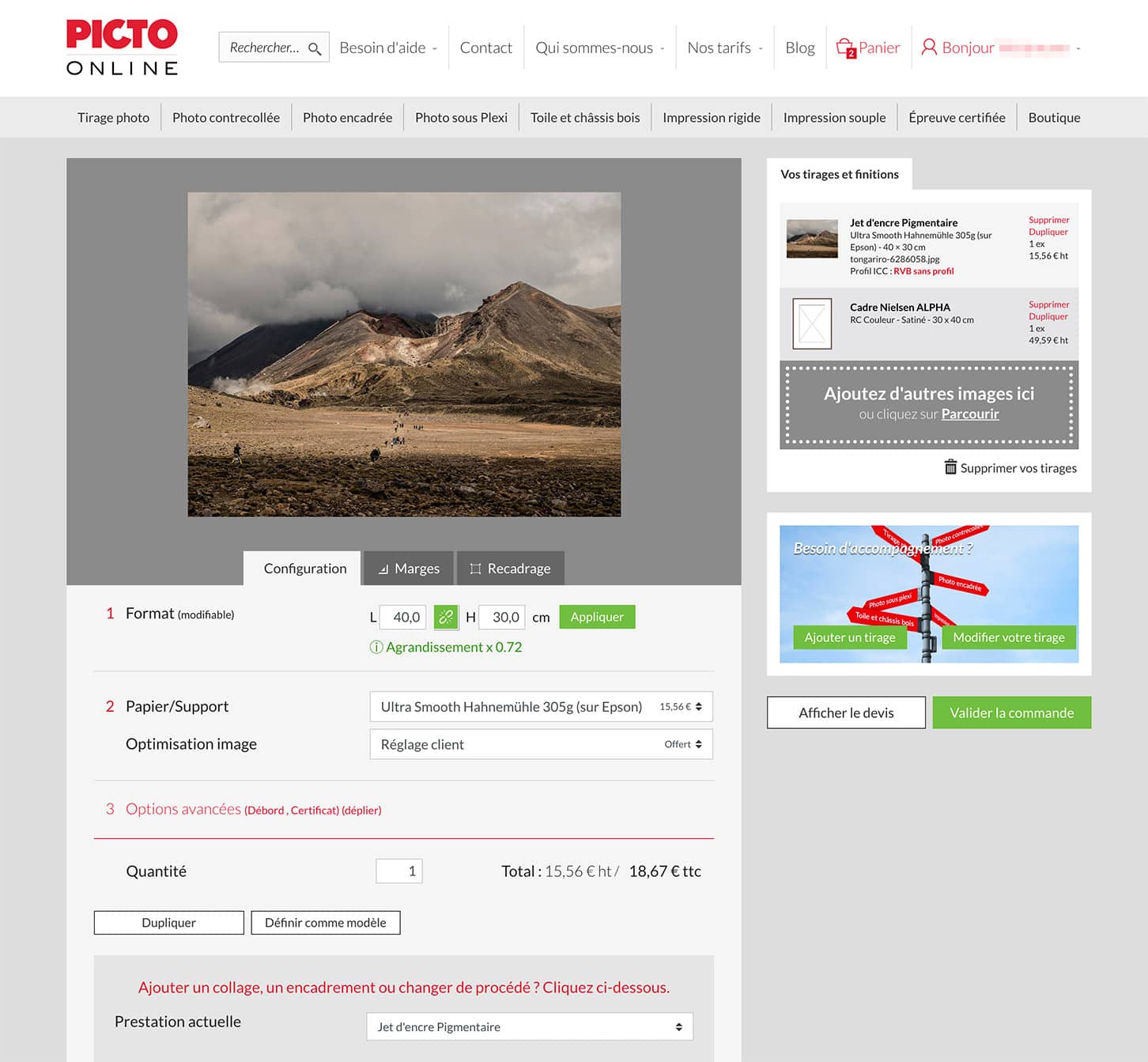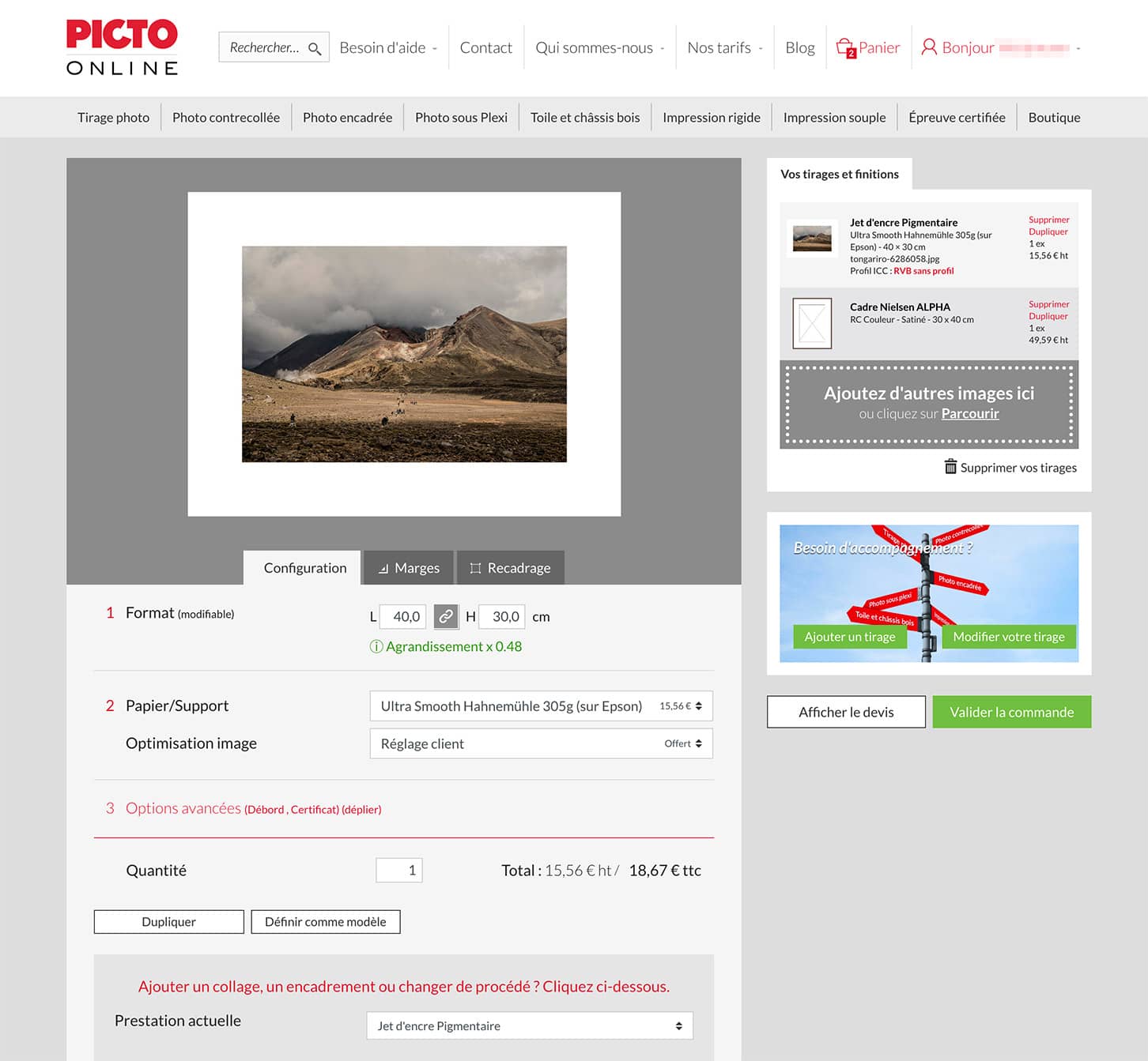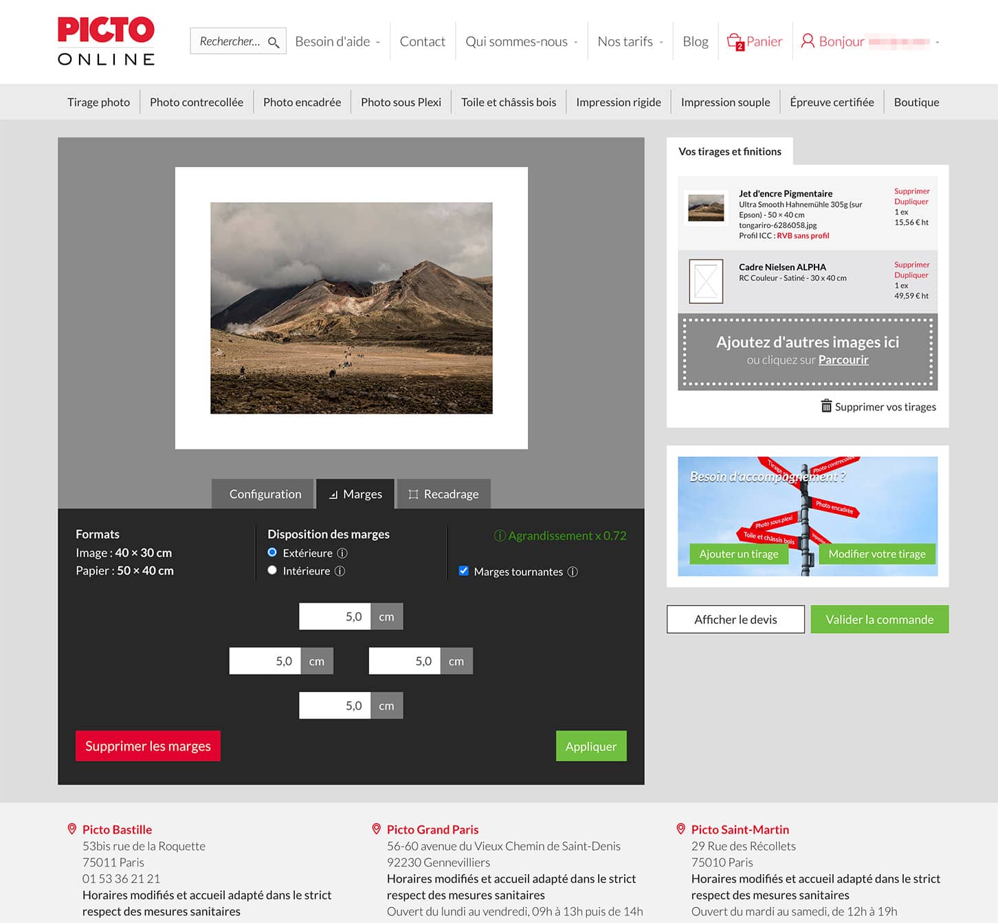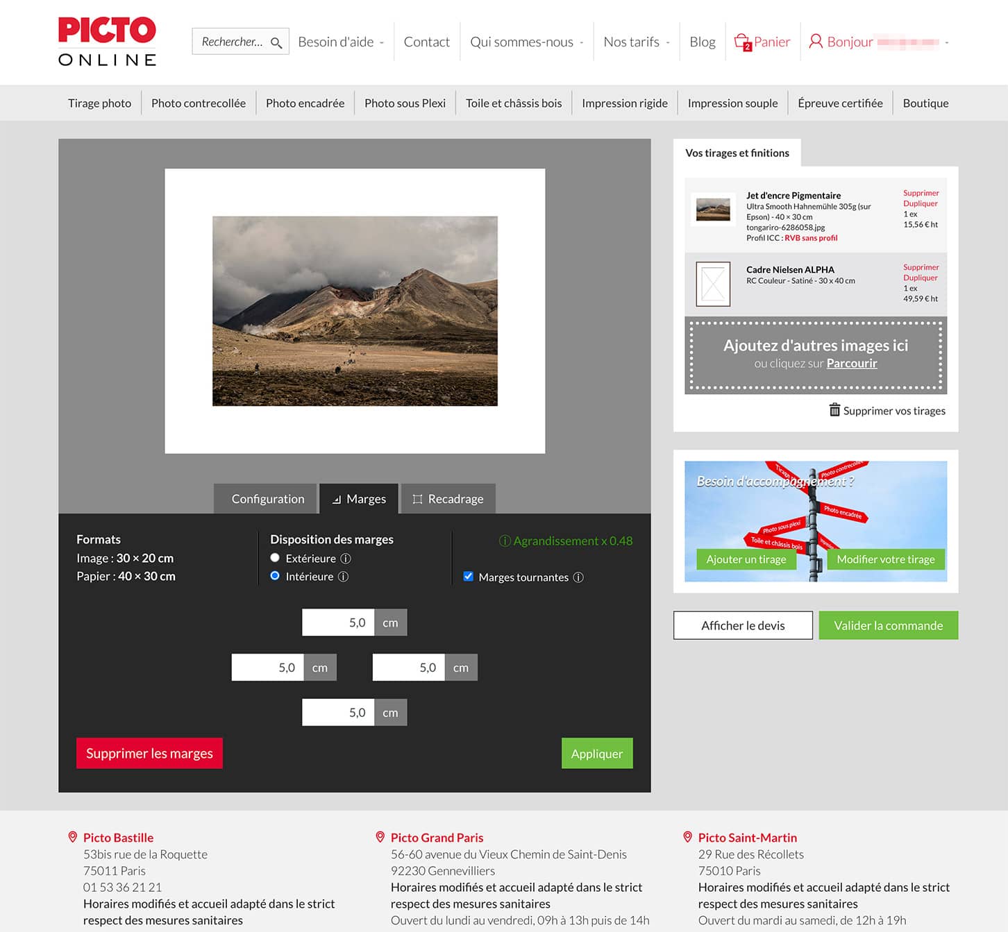 Pour revenir à votre format de tirage initial, il vous suffit de revenir sur l’onglet “Configuration” et de modifier le format du tirage. Vous gardez ainsi l’espace de marges souhaité dans recouper votre photographie et en conservant la taille du tirage final.