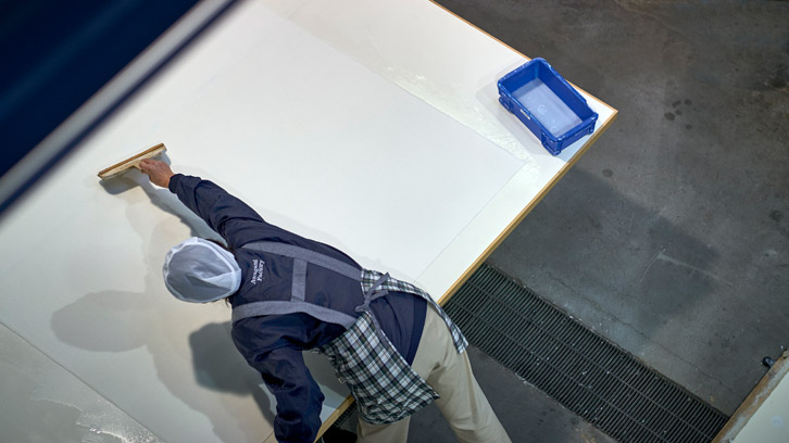 En 2018, je me suis rendu à l’usine pour suivre la fabrication du papier pour le projet Contemplation, du photographe bouddhiste Matthieu Ricard présenté à Arles. J’ai suivi, trois semaines durant, le parcours de la production d’une centaine de feuilles faites à la main de 2 x 1,5 mètres en qualité Bizan, haut de gamme.