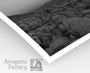 Par exemple pour le travail de Thierry Mazurel, sa première série “Broken Homeland” avait été tirée sur le Baryta Hahnemühle pour avoir un rendu proche des tirages argentiques mais pour sa nouvelle série « No Border », nous avons finalement opté pour le Awagami Kozo car il correspondait mieux à des images moins contrastées auxquelles il donnait un résultat mélancolique grâce à sa matité, son blanc naturel pas du tout agressif et sa douce texture.