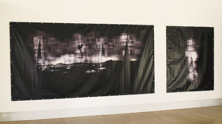 Mes travaux photographiques sont des photomontages, ce sont des assemblages de centaines de clichés, ce qui m'amène à produire des fichiers de très grand format. Le choix du support occupe une part importante dans la production de l'œuvre. J'ai commencé à utiliser les bâches il y a 13 ans. C’était à l’occasion d’une exposition présentée en extérieur. À l’époque, j’avais trouvé une imprimerie pour bâche de camion. Aujourd’hui, tous mes tirages sont réalisés sur Bâche Frontlit M1.