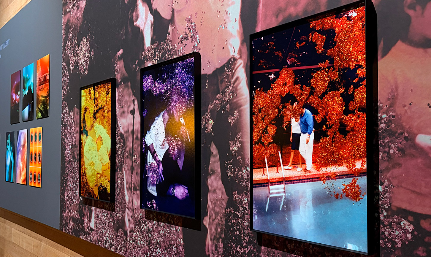 Parmi les lauréats figurait la photographe Sasha Mongin, qui présentait sa série primée Le Mourant qui ne mourait pas, avec un mélange de plusieurs types de tirages. Des tirages jet d’encre pigmentaires sur papier mat ont été encadrés sans verre, puis apposés sur de grands papiers peints afin d’éviter les reflets indésirables causés par les larges baies vitrées.