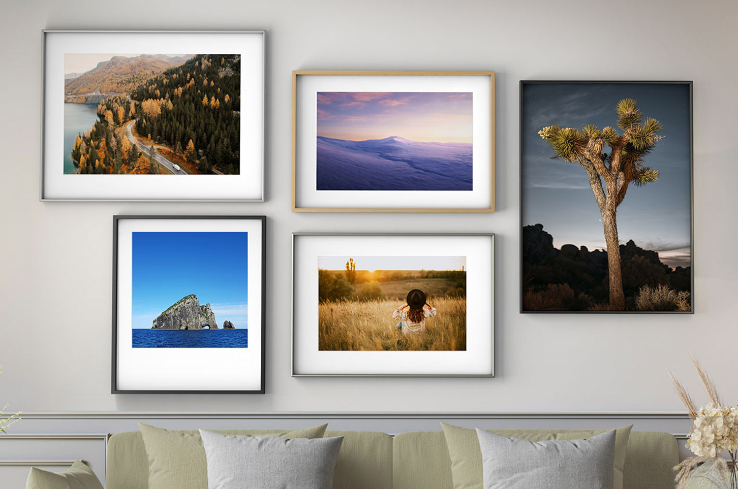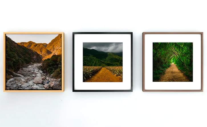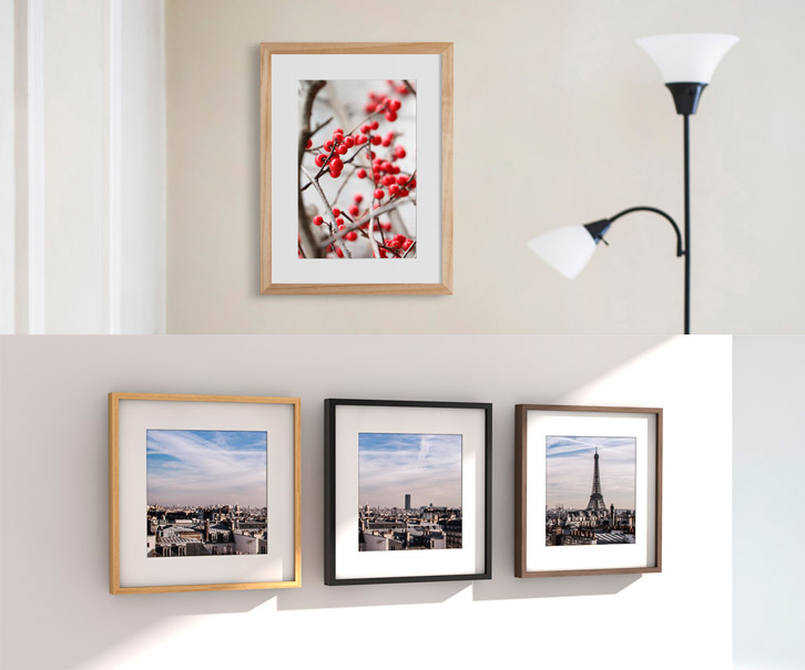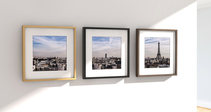 Des photographies couleur très saturées par exemple s’harmonisera plus facilement avec un encadrement noir, blanc ou alu plutôt qu’en bois. Tandis que le bois s’accordera parfaitement avec une pratique plus classique de la photographie, comme le noir et blanc par exemple.