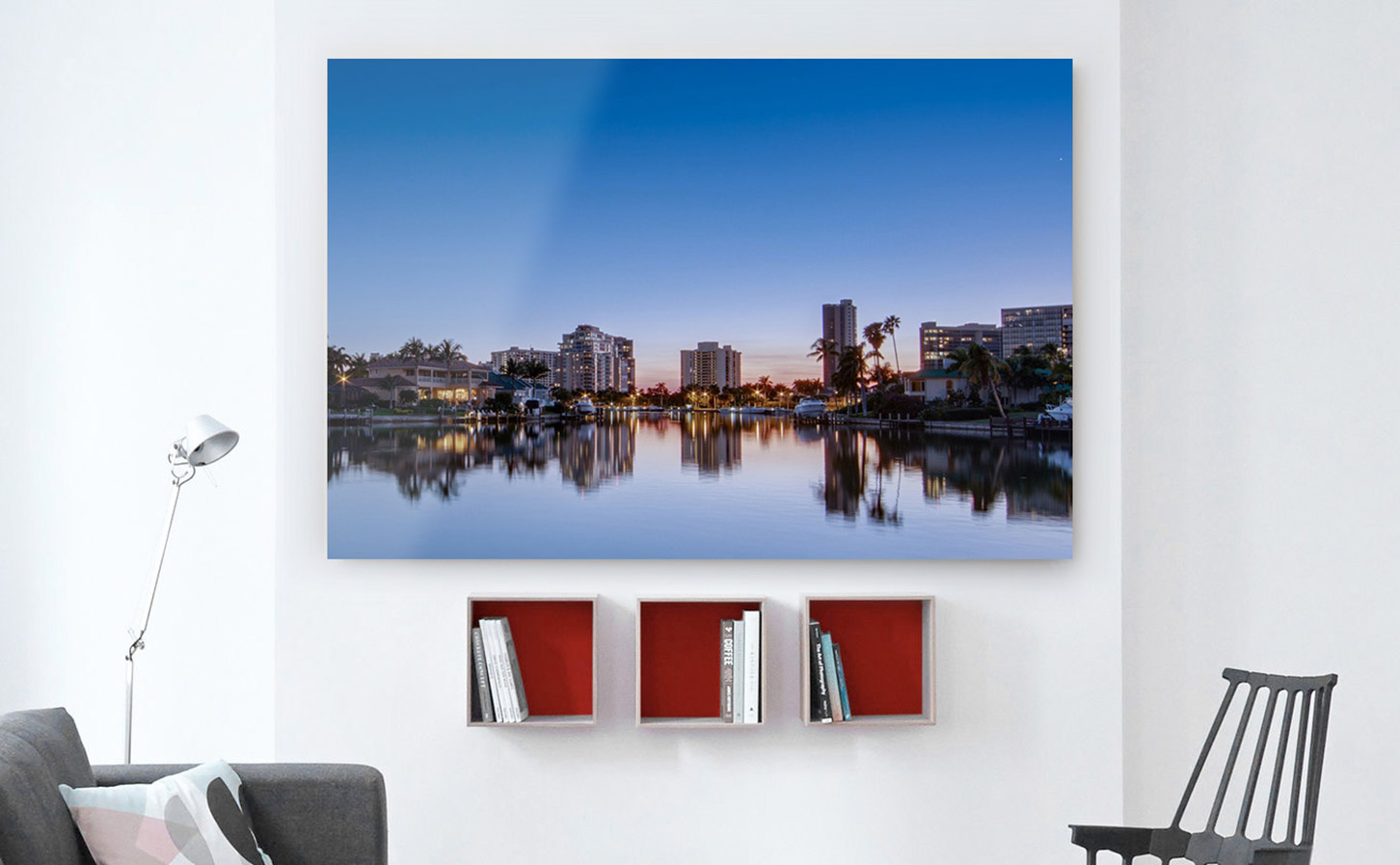 Le style du lieu - que ce soit d’un point de vue architectural ou en termes de décoration - qui accueillera votre ou vos encadrements est important dans le choix de la finition. Est-il ancien, classique ou moderne ? Si dans certains cas la rupture des genres peut-être intéressante, l’harmonie est généralement la meilleure option. Ainsi on privilégiera les finitions blanches, noires ou en alu dans les environnements plus contemporains, et le bois dans les intérieurs plus classiques. Cela reste une valeur sûre. Concernant la tonalité, plus vous irez vers du foncé, plus vous renforcerez l’effet d’encadrement et d'enfermement du tirage, ce qui peut-être un véritable parti pris en apportant du contraste. Si vous souhaitez vraiment détacher l’image, du reste de l’espace, en particulier si vos murs sont blancs, privilégiez un encadrement foncé. À l’inverse, si vous souhaitez donner de la respiration à votre image, choisissez des tonalités clairs, comme le blanc, ou le chêne. L’harmonisation sera d’autant plus importante si vous avez plusieurs cadres sur un même mur.