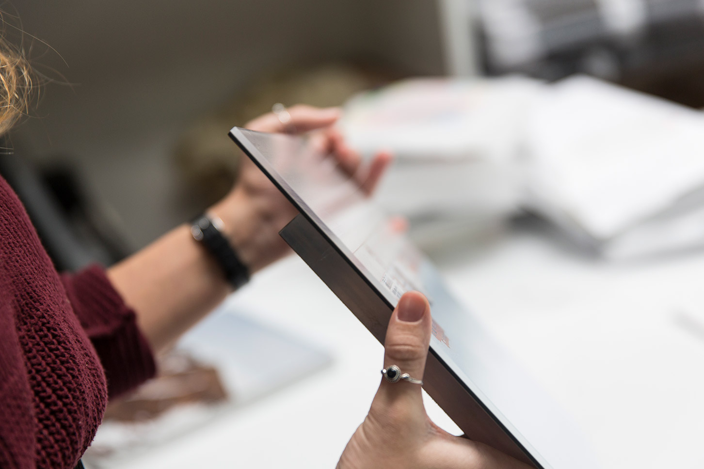 Si le rôle premier de l’encadrement est de protéger le tirage photographique, il est devenu au fil des siècles un objet décoratif qui sublime l’œuvre. Le choix du ton et de la couleur peut découler du lieu où sera exposée la photographie encadrée, mais également du style de votre image. Un même tirage n’aura pas le même rendu si il est encadré avec du noir, du blanc, ou encore du bois brut. Lorsque vous visitez des expositions, vous avez pu remarquer qu’en fonction des œuvres, le choix des cadres peut différer, ce n’est pas seulement esthétique, il est ici question de choix scénographiques qui viennent donner du sens à la lecture des images…