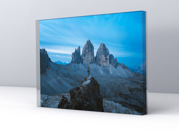 Bloc Plexi Verre acrylique (30mm à l'avant, tirage argentique et Verre acrylique 10mm à l'arrièreà
