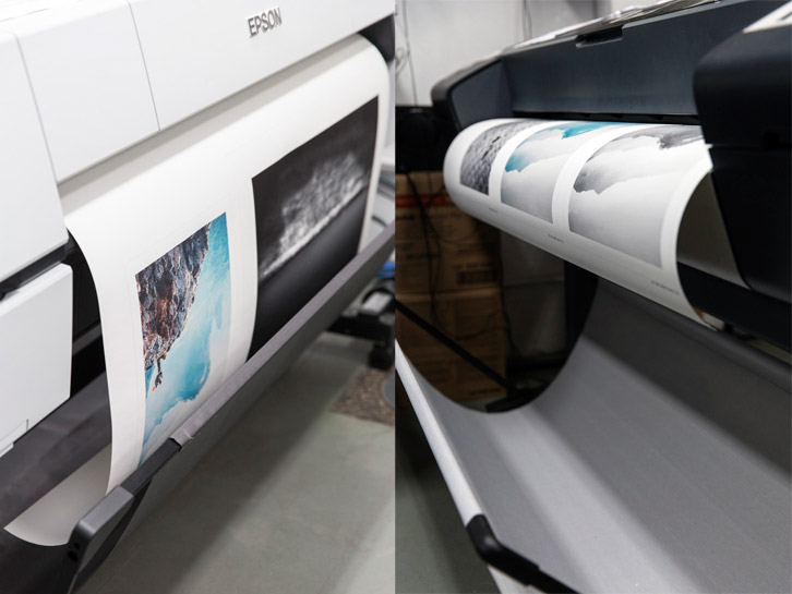 Tirages argentiques d’après fichier numérique sur papier RC sec à la sortie de la machine.