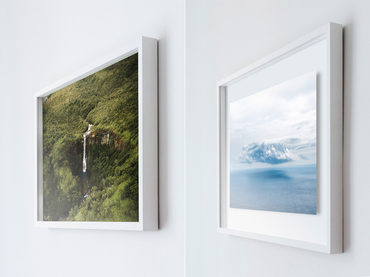Ensuite, nous vous proposons deux autres encadrements très haut de gamme qui transforment votre tirage en une véritable œuvre d’art : La Boite et le Cadre flottant au design très contemporain.