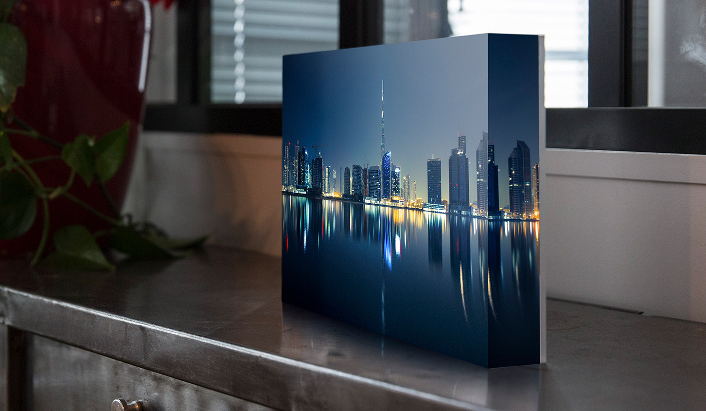 Vous pouvez également transformer votre tirage en un véritable objet de décoration avec le Bloc Plexi. Votre tirage est placé autour d’un verre acrylique très épais et transparent que vous pouvez déposer où vous le souhaitez.