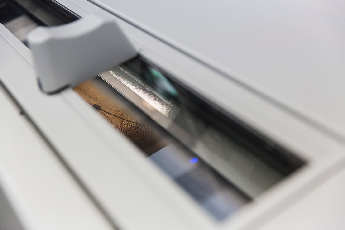 L’opérateur va charger le rouleau de papier sur l’imprimante grand format, une mire de contrôle est imprimée puis l’impression est lancée. La durée d’impression peut prendre beaucoup de temps en fonction du support choisi et de la dimension du tirage.