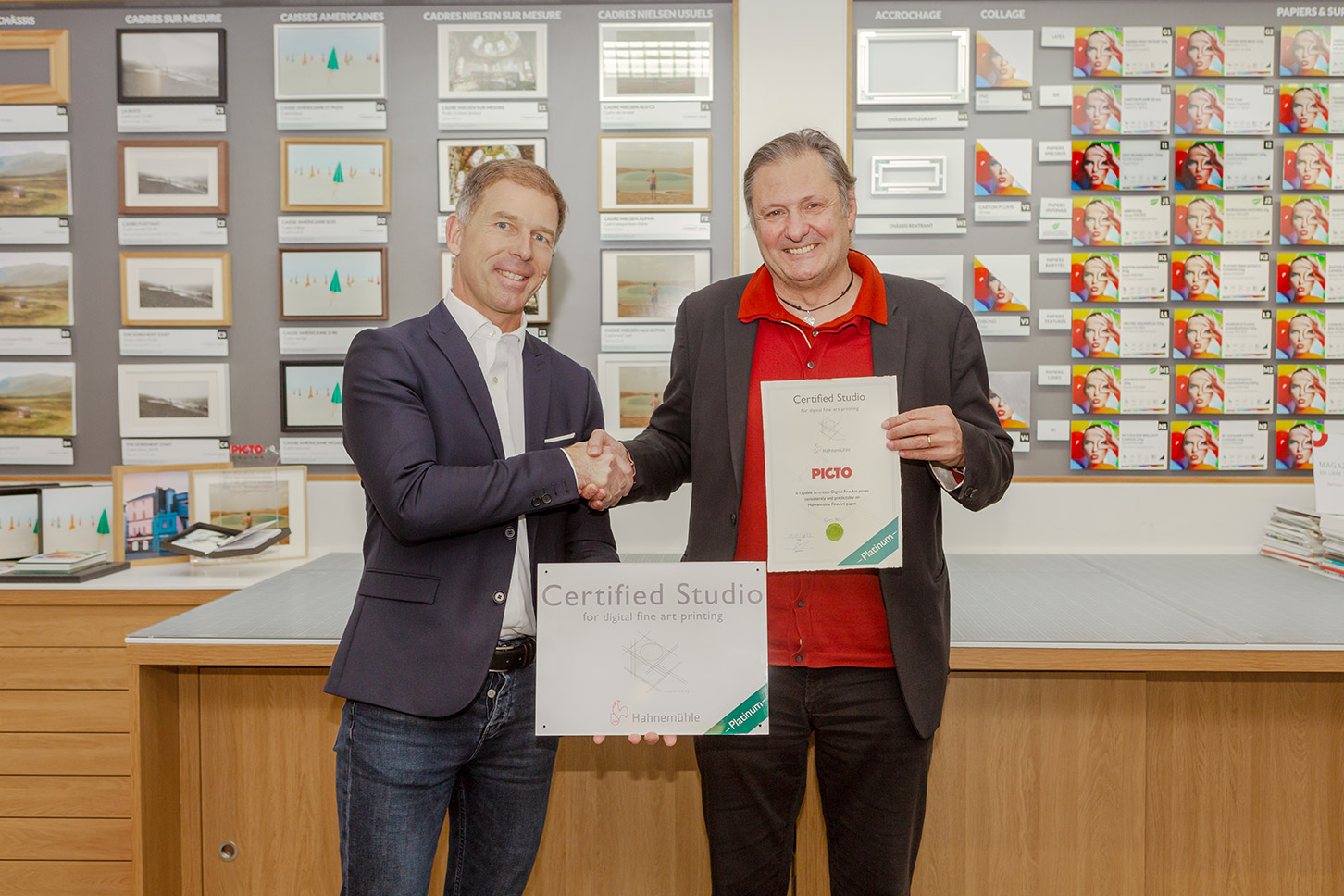 Le laboratoire PICTO a obtenu la certification Hahnemühle Certified Studio Platinum, devenant ainsi le premier laboratoire français à recevoir cette distinction. Cette reconnaissance fait de PICTO l’un des meilleurs laboratoires certifiés par Hahnemühle à travers le monde et atteste de l'expertise approfondie du laboratoire.