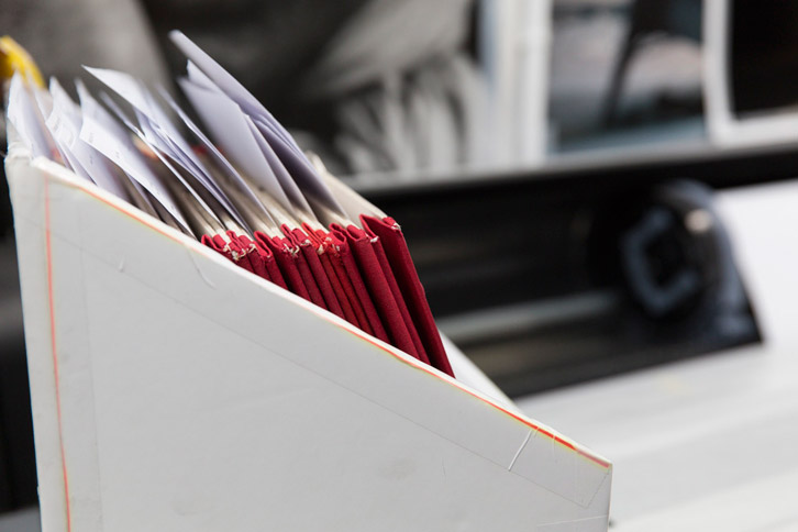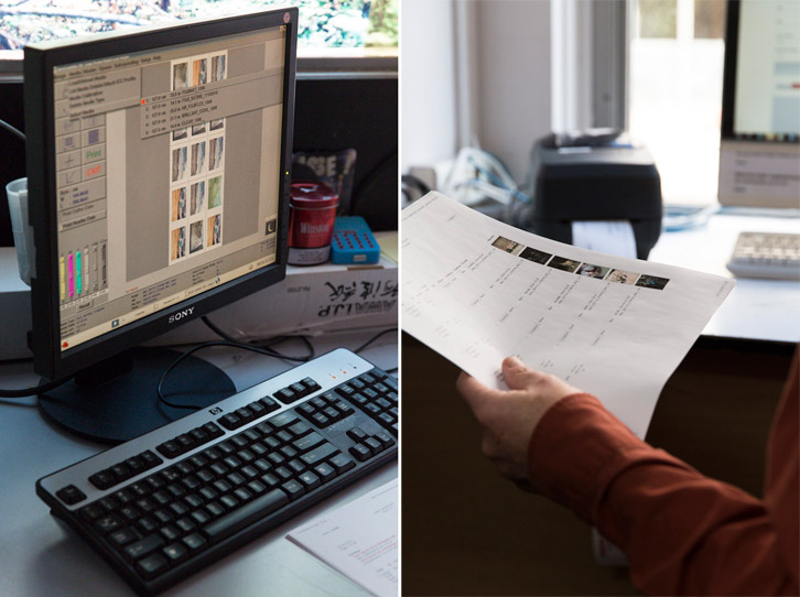 Un opérateur va prendre en charge votre commande et regarder en détail de quoi elle est composée pour la classifiée parmi nos trois prestations : lambda, jet d’encre et petits tirages. Sera alors imprimé une feuille de route pour que chaque opérateur puisse identifier les tirages en fonction de son procédé et son support. Associée à cette feuille de route, nous réalisons l’impression d’étiquettes correspondantes pour les tirages avec leurs spécificités.