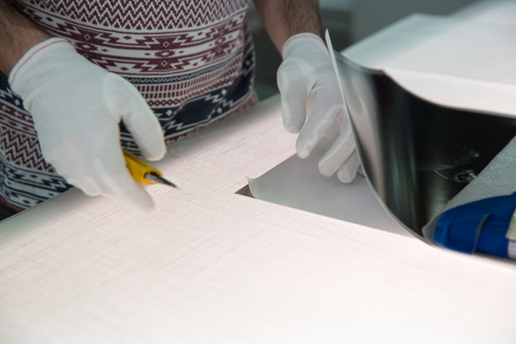 Votre tirage, une fois l’étape de la découpe passée - accompagné de sa feuille de route détaillée - sera alors emballé dans un carton blanc à plat, ou dans un tube en cas de grand format. Il sera mis à disposition pour nos navettes internes journalières en vue de passer l’étape du contrecollage. Votre tirage contrecollé sera alors à nouveau emballé très précautionneusement afin d’être livré à l’atelier d’encadrement.