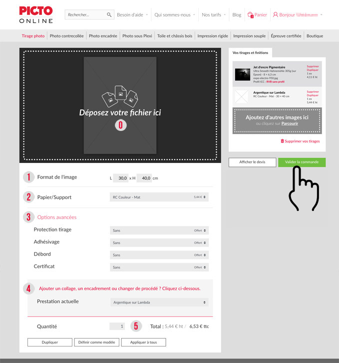 • 0 - Déposer son fichier dans la zone prévue à cet effet (si vous avez des questions concernant la préparation de vos fichiers, merci de lire notre article en cliquant ici)