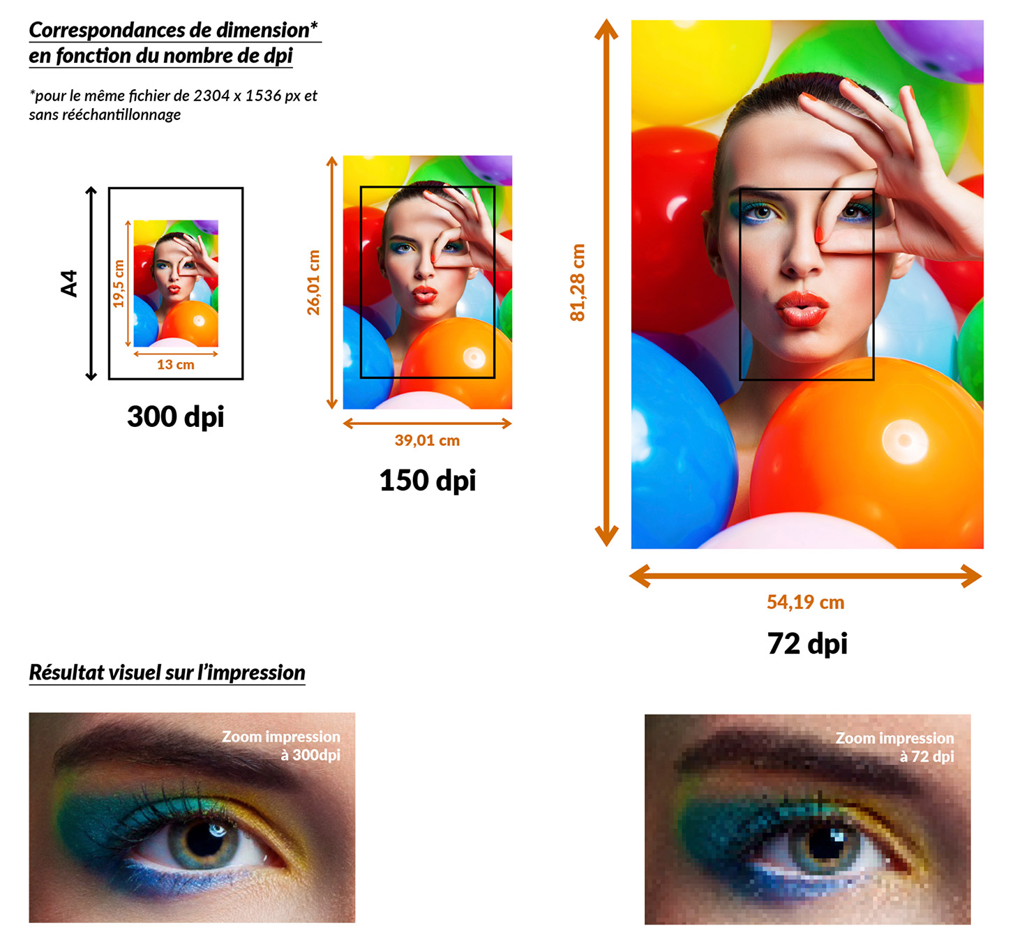 Exemple d’illustrations de la page "Choix de la résolution du fichier destiné à l’impression"