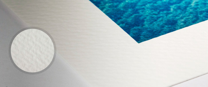 Le papier aquarelle a été conçu spécifiquement pour cette pratique picturale, qui consiste à delayer fortement la peinture dans de l’eau. Son support nécessite donc qu’il soit très épais pour absorber parfaitement le liquide et éviter les gondolements au séchage. Ce papier a également la particularité d’être texturé, jouant sur l'effet des motifs. En photographie, c’est cette texture qui sera particulièrement recherchée. Pour obtenir des papiers de qualité, Canson® et Hahnemühle utilisent uniquement du coton à 100%. La répartition de leurs fibres en font un papier très stable, et durable dans le temps.