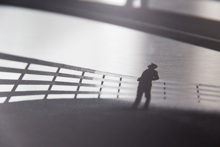 Lors de l’impression, les encres vont être solidifiées et fixées sur le support en alu brossé grâce à des rayons UV. Les “blancs” de vos images, ne seront pas imprimés, laissant ainsi apparaître la surface de l’aluminium brute. Le brossage du support confèrera une texture particulière de lignes dirigées de gauche à droite.