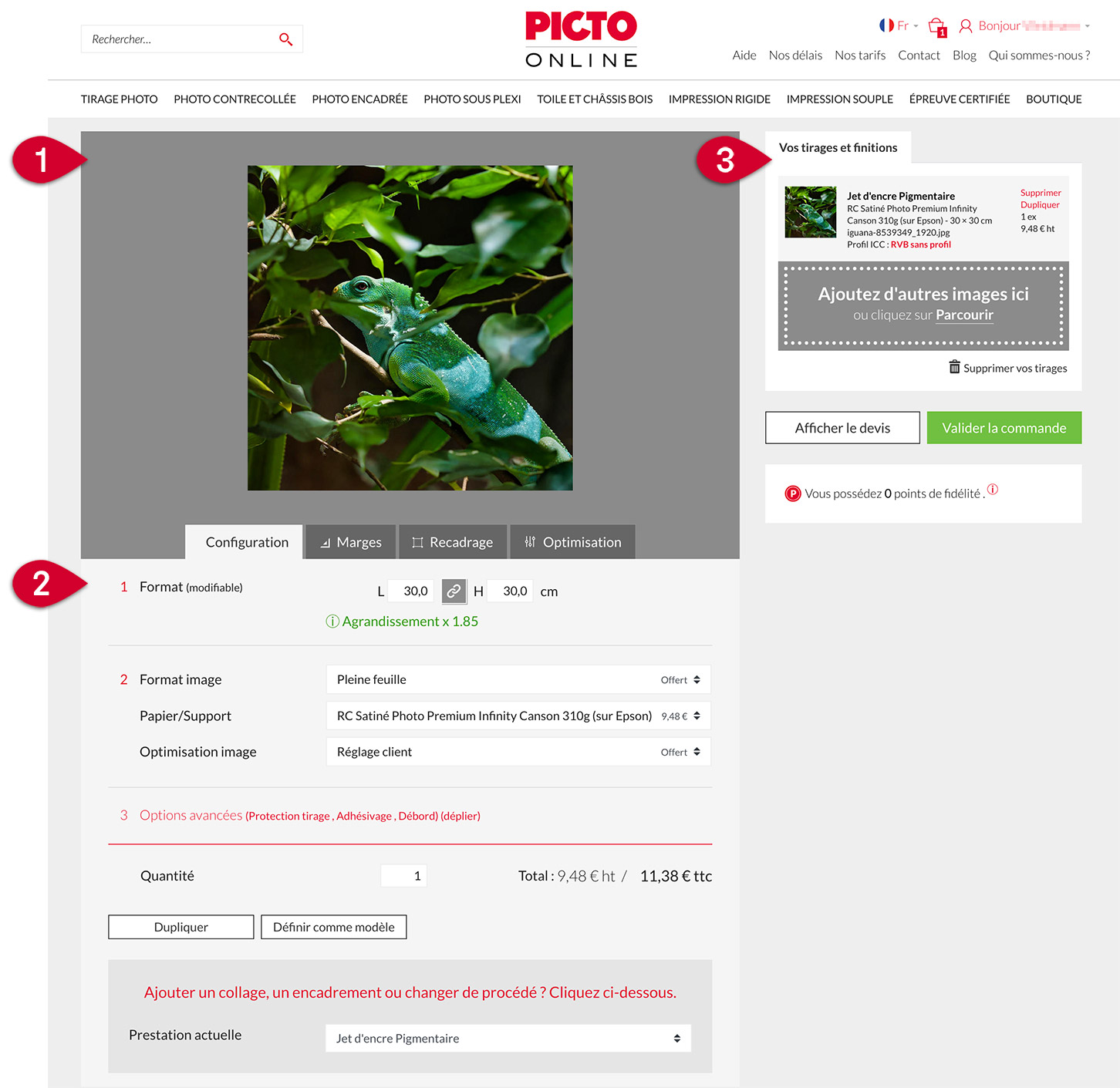 La valeur affichée est celle du fichier tel que vous avez téléchargé, sans aucun recadrage. En effet, PICTO Online n’intervenant pas sur vos images, il est important de dimensionner votre fichier original en fonction de votre besoin avant de le télécharger pour que le ratio (rapport hauteur / largeur) de votre fichier soit respecté.
