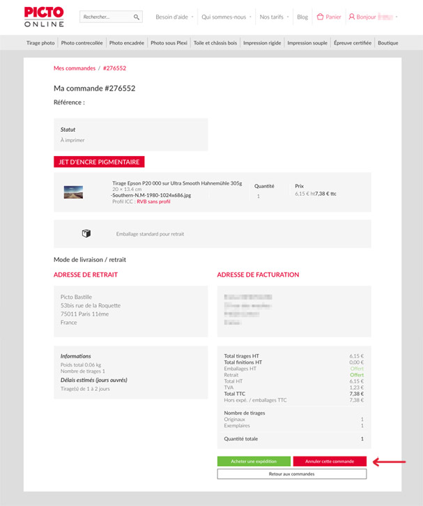 Comment annuler une commande sur la plateforme PictoOnline ?