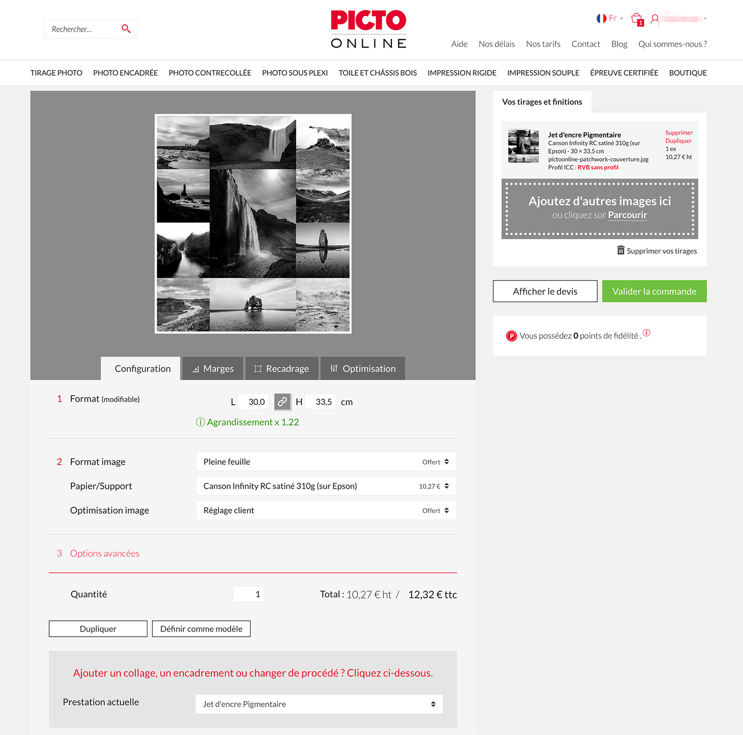 4. Il ne me reste plus qu’à passer commande sur Picto Online pour réaliser le tirage final de mon patchwork.