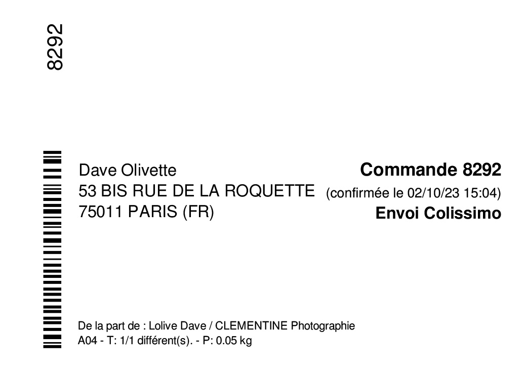 Neutral label is a free label template that only displays the essential information about your order without any reference to PICTO Lab—no logo and no mention of our sites. A text "