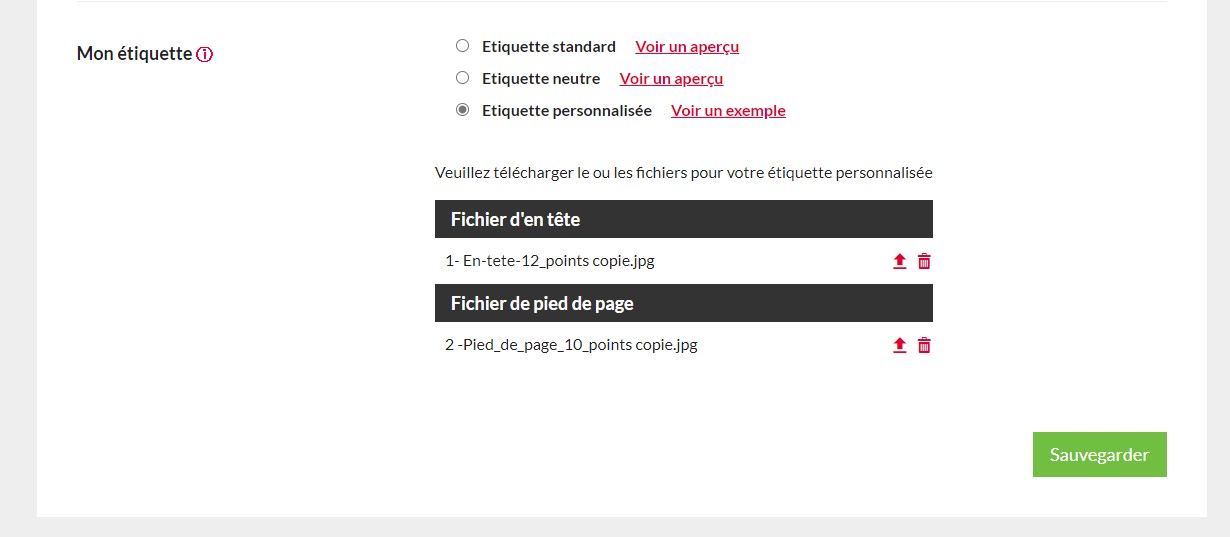 - The image files uploaded in My Label are saved by us and will automatically be applied to every order with a custom label.