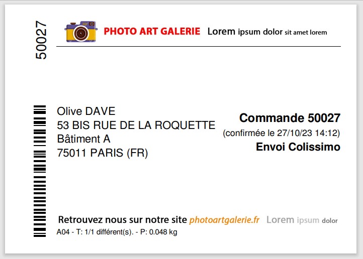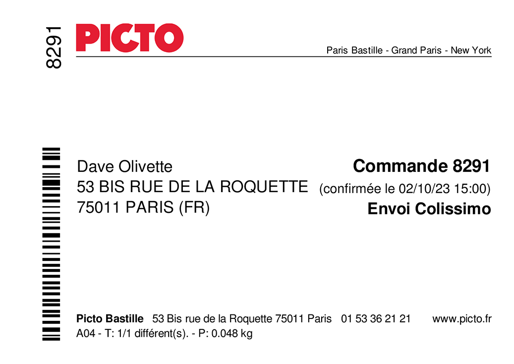 Standard label is PICTO Online’s default label since its creation; it is enabled by default and displays all the important information about your order. It includes the PICTO logo and the names of our various sites.