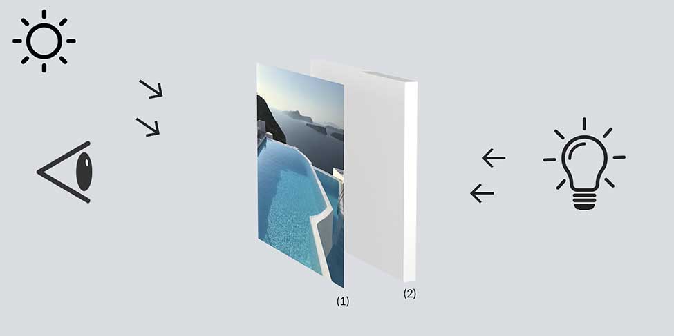 Impression sur un verre acrylique (Plexi) blanc diffusant.