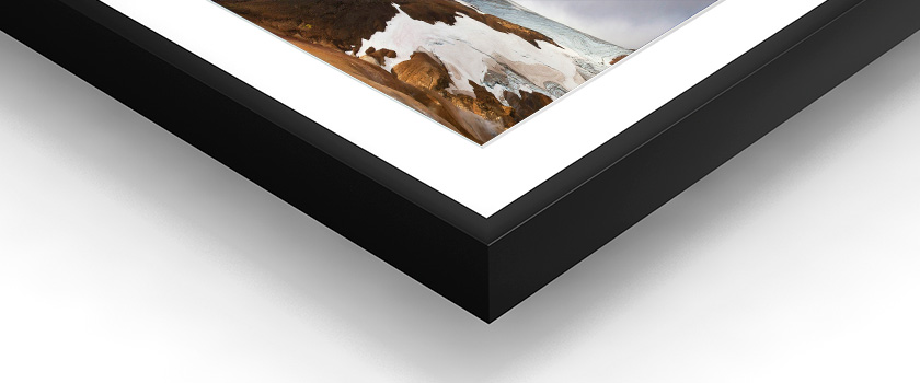 Cadre massif et profond avec un profil en aluminium anodisé noir mat de haute qualité.