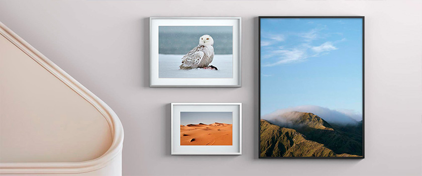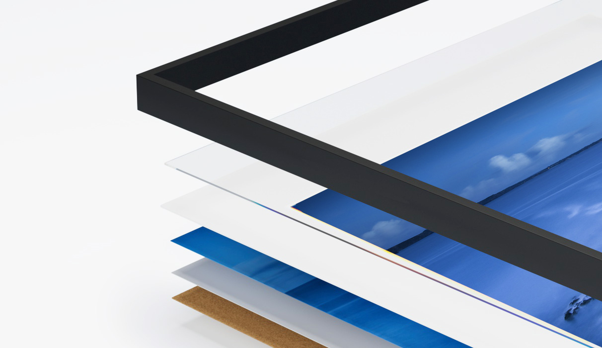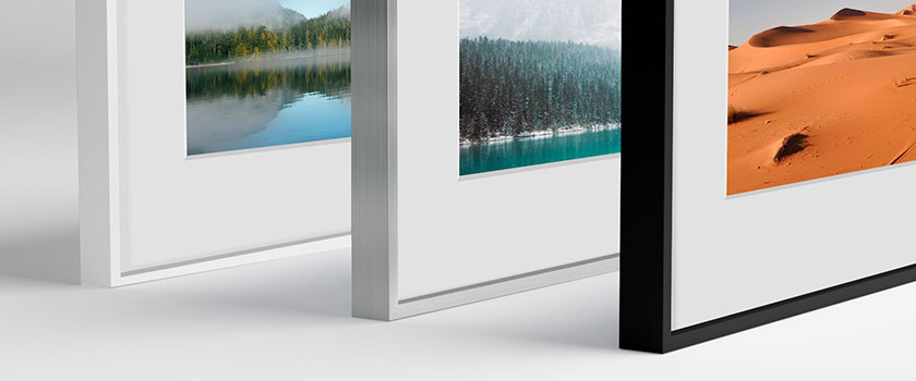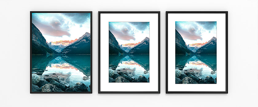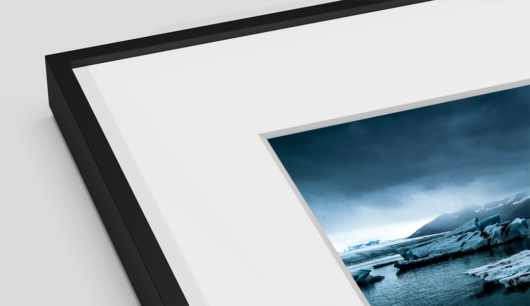 Pour valoriser votre tirage vous avez plusieurs options: soit plein format jusqu'au bord du cadre, soit avec un passe-partout en carton spécial sans acide ou soit avec des marges blanches. En savoir plus sur la prestation Cadre Nielsen Alu C2.