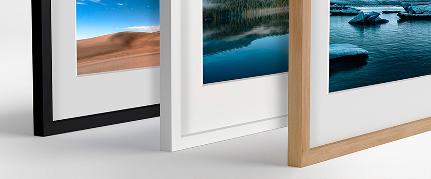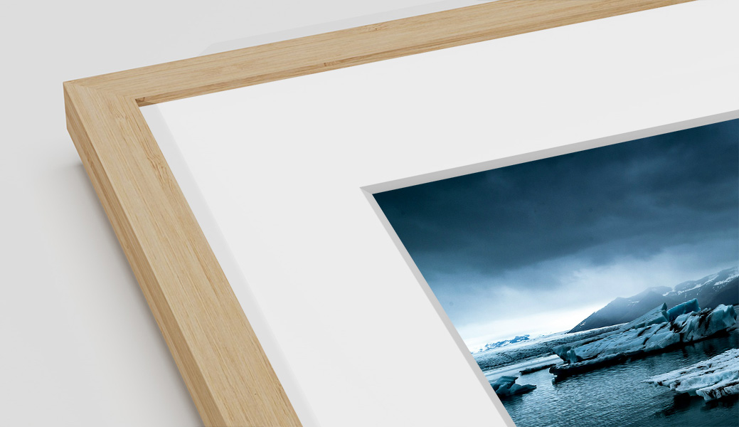 Pour valoriser votre tirage vous avez plusieurs options : soit plein format jusqu'au bord du cadre, soit avec un passe-partout en carton spécial sans acide ou soit avec des marges blanches. En savoir plus sur la prestation Cadre Nielsen Bois Apollo.