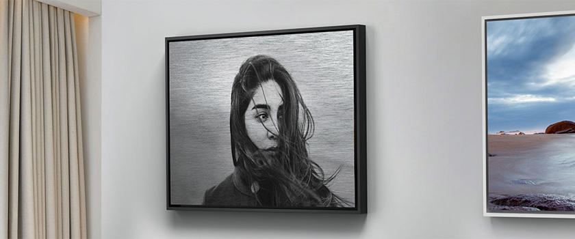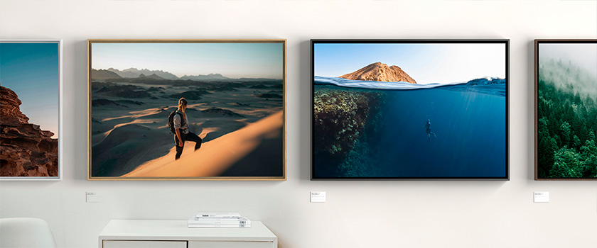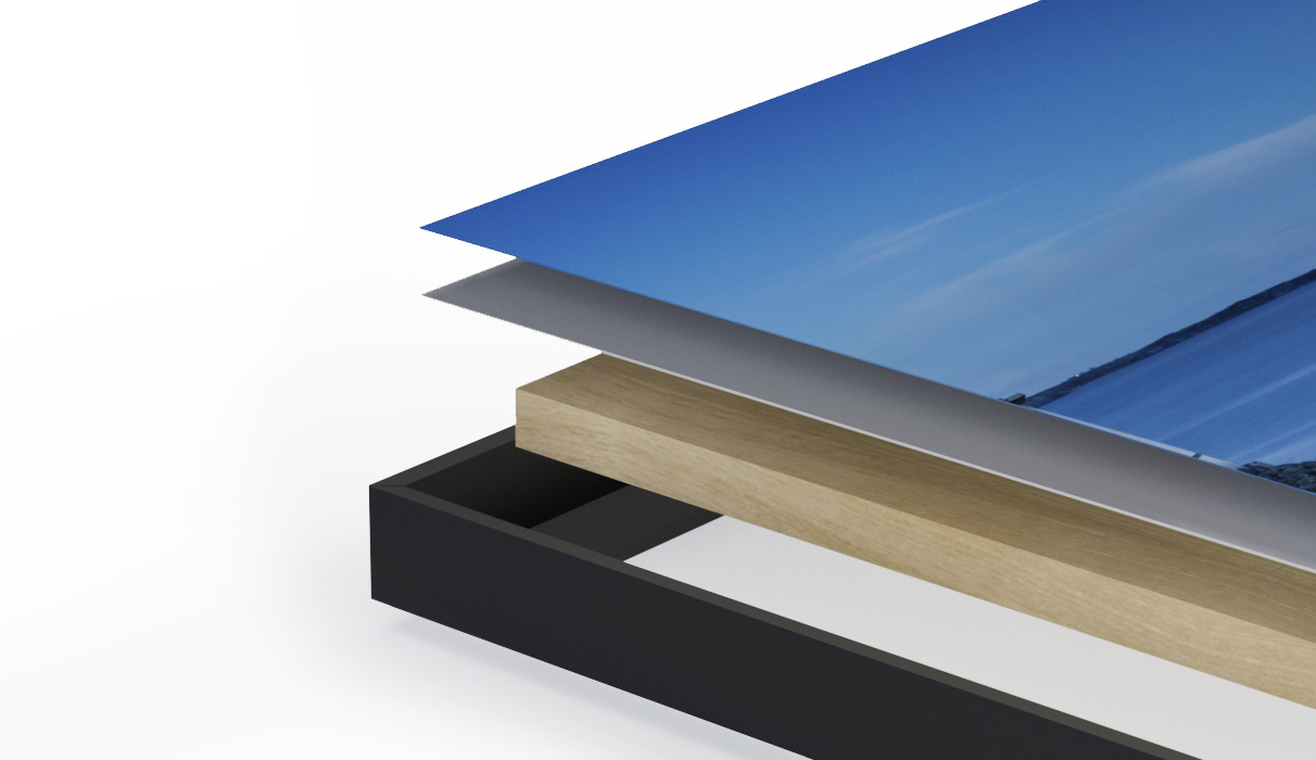 Exemple de configuration pour 30 × 40 cm : 114,29 € HT- Accrochage : Rail bois - Papier/Support : RC Couleur Satiné Fuji 230g - Collage : Aluminium 1 mm Cadre : Cadre noir 8/40.