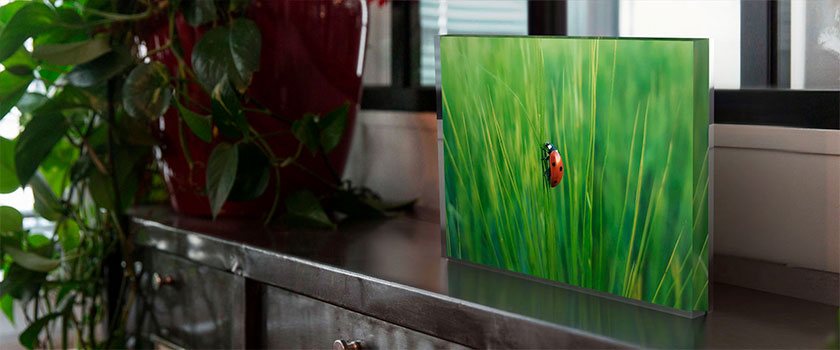 Notre finition Bloc Plexi vous propose d’assembler par collage votre tirage autour d’un verre acrylique très épais et absolument transparent.