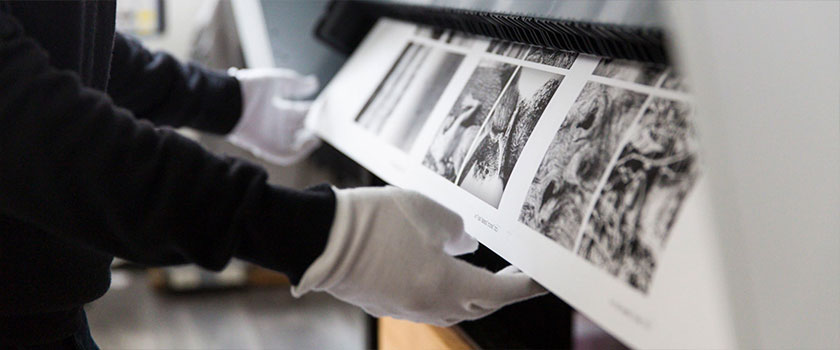 Toujours à partir de votre fichier numérique, nous pouvons imprimer sur un support film opalescent pour obtenir un internégatif à la taille réelle de votre futur tirage.